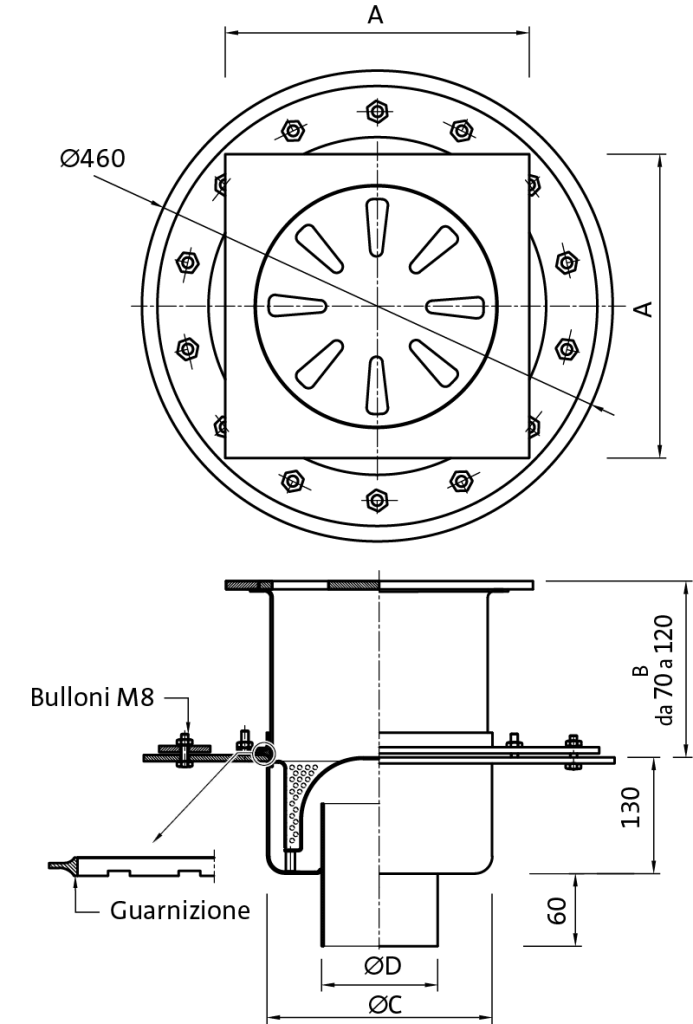 Home / Drainage systems / Gullies and drain traps / Stainless steel telescopic gullies / Telescopic gully 300×300 mm stainless steel gully