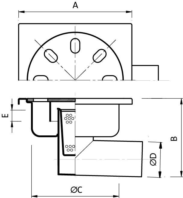 Home / Sistemi di drenaggio / Chiusini e Pilette / Chiusino 200×200 mm con scarico laterale ø 63,5 mm