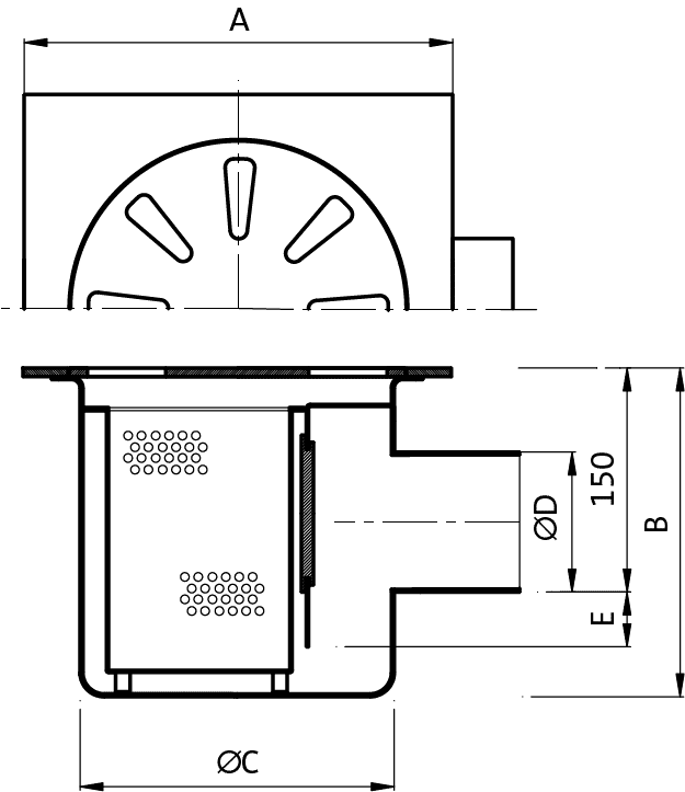 Home / Sistemi di drenaggio / Chiusini e Pilette / Chiusino 300×300 mm con scarico laterale sul corpo ø 101,6/110 mm