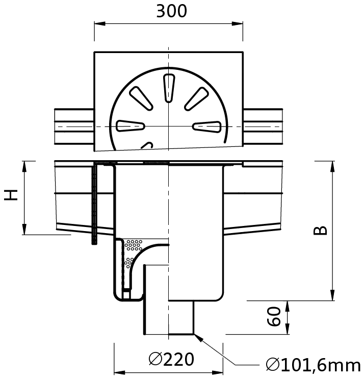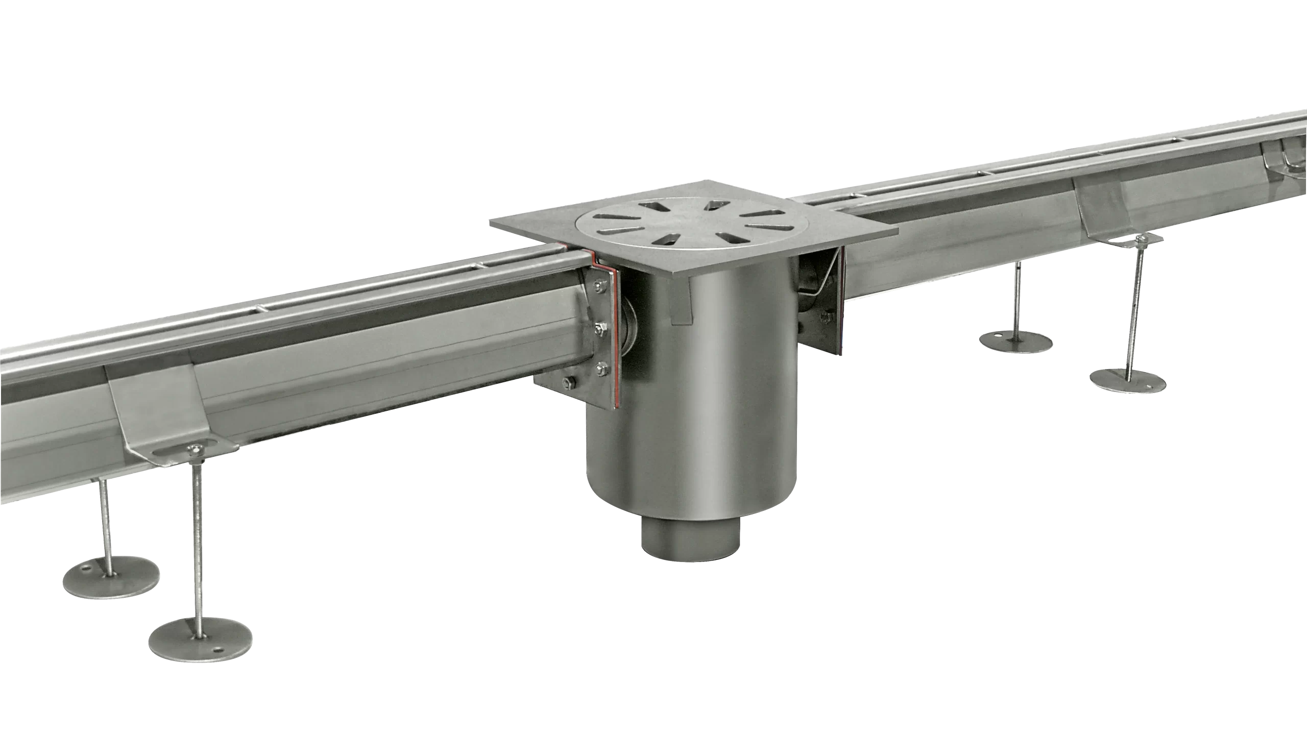 Home / Sistemi di drenaggio / Canaline inox a fessura / Chiusino a doppio innesto con scarico verticale e canale a fessura