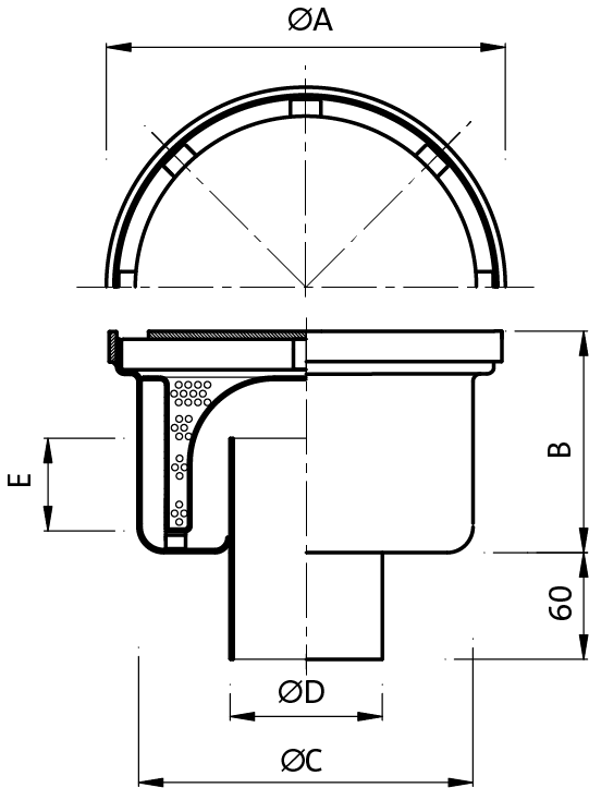 Home / Sistemi di drenaggio / Chiusini e Pilette / Chiusino tondo rinforzato ø 260 mm, scarico ø 101,6/110 mm