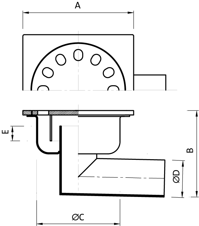 Home / Sistemi di drenaggio / Chiusini e Pilette / Chiusino 150×150 mm con scarico laterale ø 50 mm