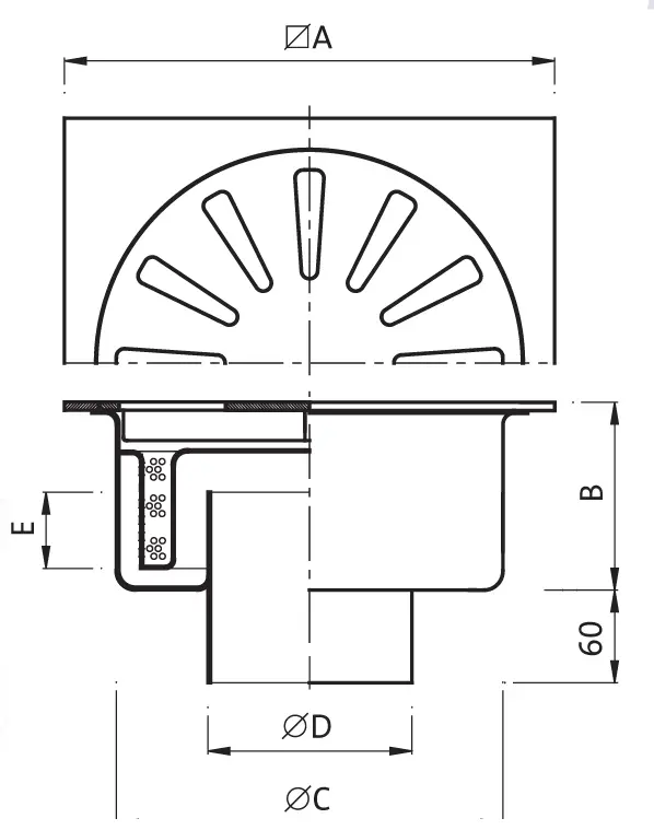Home / Sistemi di drenaggio / Chiusini e Pilette / Chiusino 350×350 mm con scarico ø 154 mm