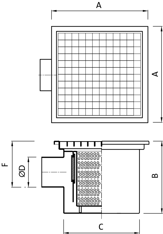 Chiusino grigliato a scarico laterale in acciaio inox
