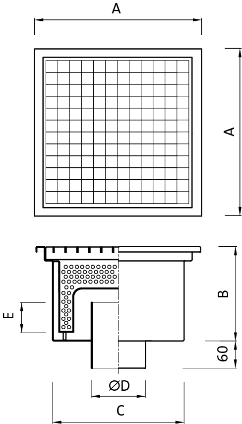 Home / Sistemi di drenaggio / Chiusini e Pilette / Chiusino grigliato a scarico verticale in acciaio inox