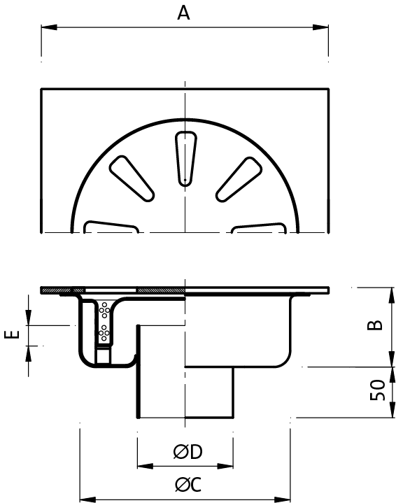 Home / Sistemi di drenaggio / Chiusini e Pilette / Chiusino ribassato 300×300 mm, scarico ø 101,6/110 mm