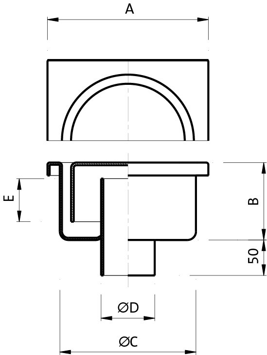 Home / Sistemi di drenaggio / Chiusini e Pilette / Chiusino stampato 150×150 mm, scarico ø 50 mm