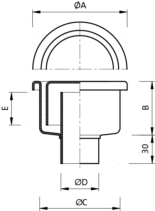 Chiusino tondo ø 100 o 150 mm, scarico ø 40/50 mm